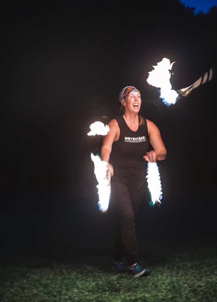 Jen describes her work as a juggler, stilt-walker, balloon artist and fire performer as “serving families, communities, organizations, professional athletes from all over the city and really all over the Midwest.”